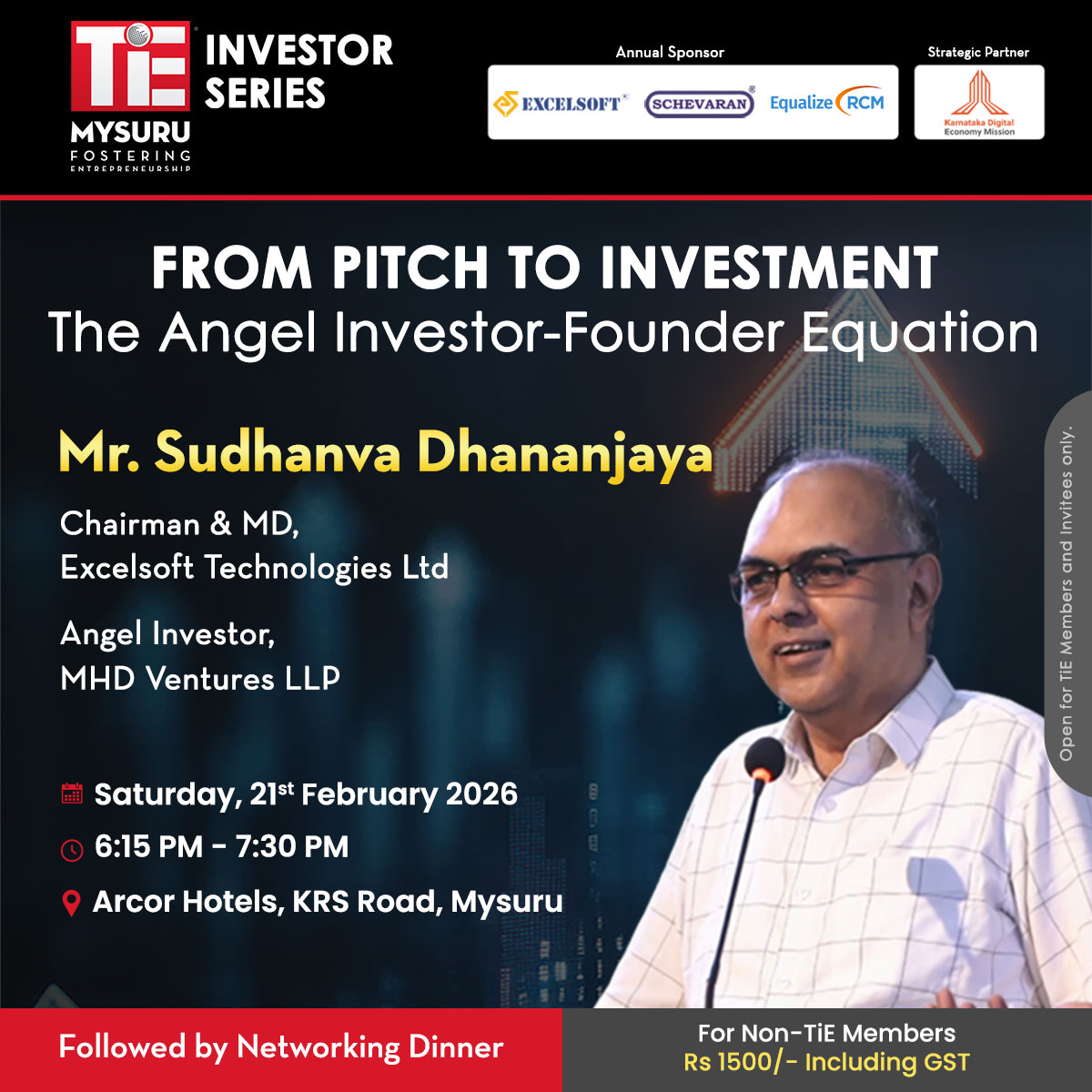 TiE Mysuru invites local startups and entrepreneurs to connect with experienced mentors who can guide you in strategy, scaling, fundraising, and more.